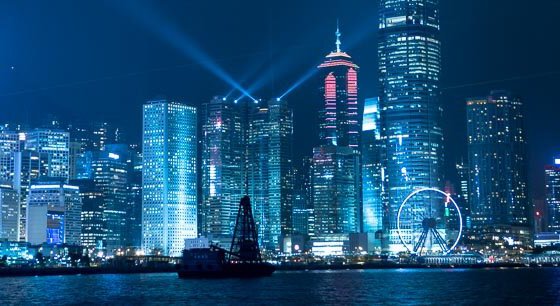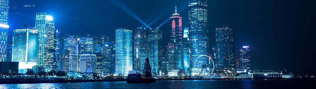 Gerade im Dunkeln hast du eine fantastische Aussicht auf die Skyline von Hong Kong Island.